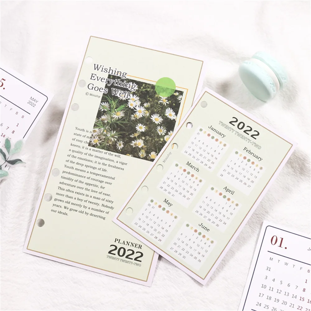 2022 Симпатичные Дейзи календарь Тетрадь внутренняя Бумага A5A6A7 с отрывными листами разделители разделитель страниц график планировщик для скрапбукинга Бумага