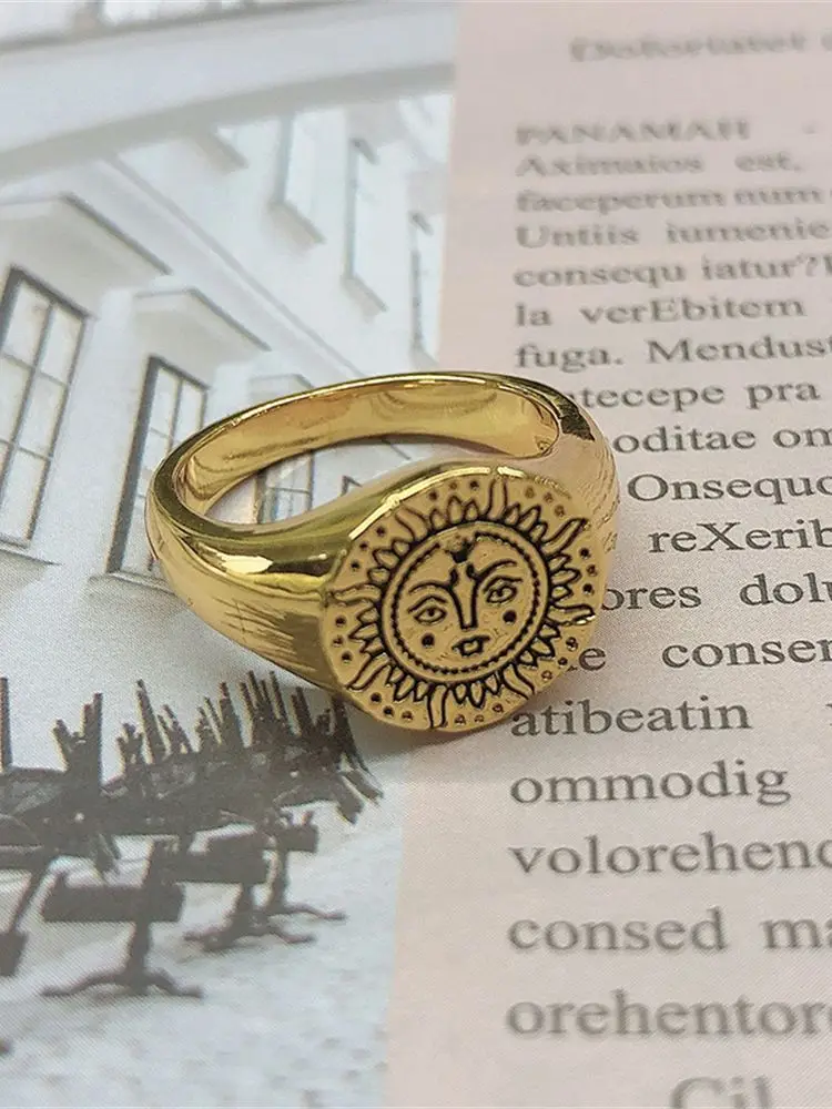 Винтажное солнцезащитное кольцо для женщин, узор лица от солнца, панк, пара, мода, ретро, преувеличение, новое готическое украшение, Странные кольца унисекс