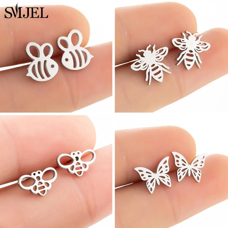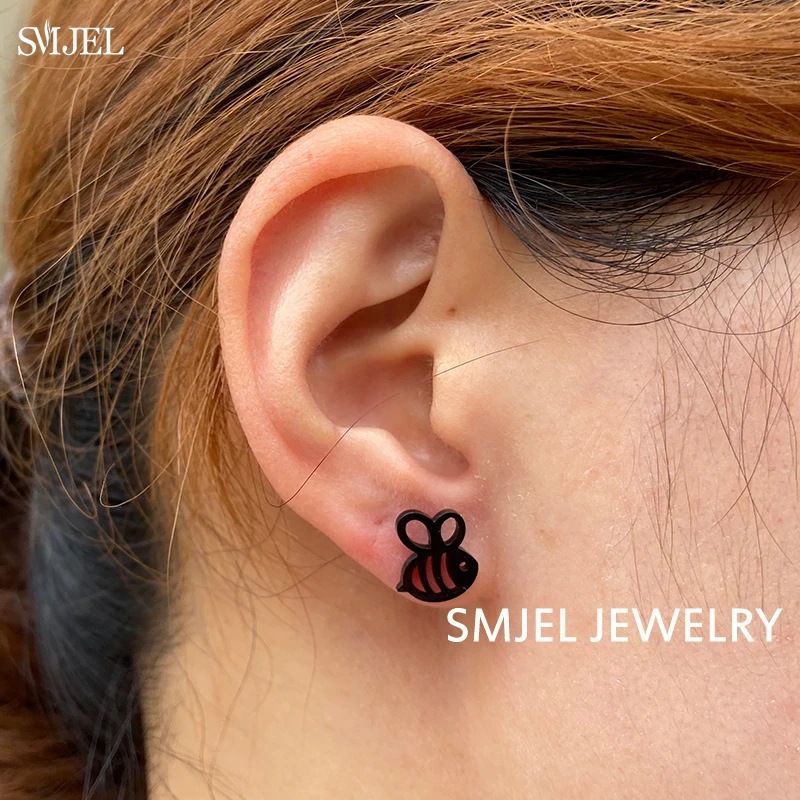 Модный соты пчел серьги для женщин черный маленький из нержавеющей стали пчела геометрические сережки-шпильки оптом подарки на день рождения