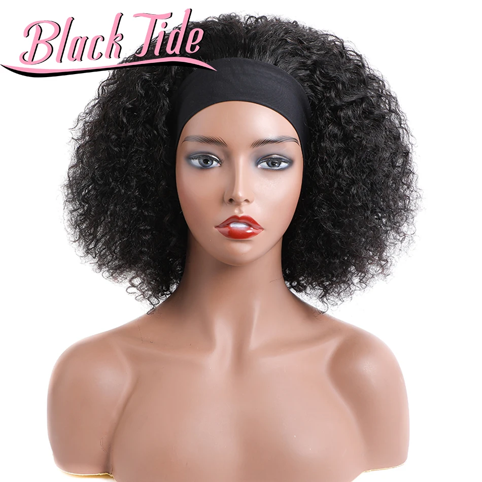 Парик с головной повязкой с афро кудрявый вьющиеся парик с головной повязкой, несекущиеся бразильские 150% парик с головной повязкой человеческие волосы курчавые вьющиеся повязка на голову парик Бесплатная повязка на голову