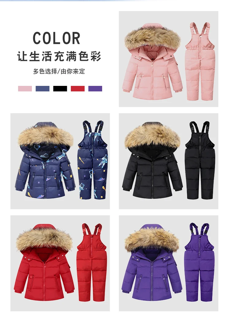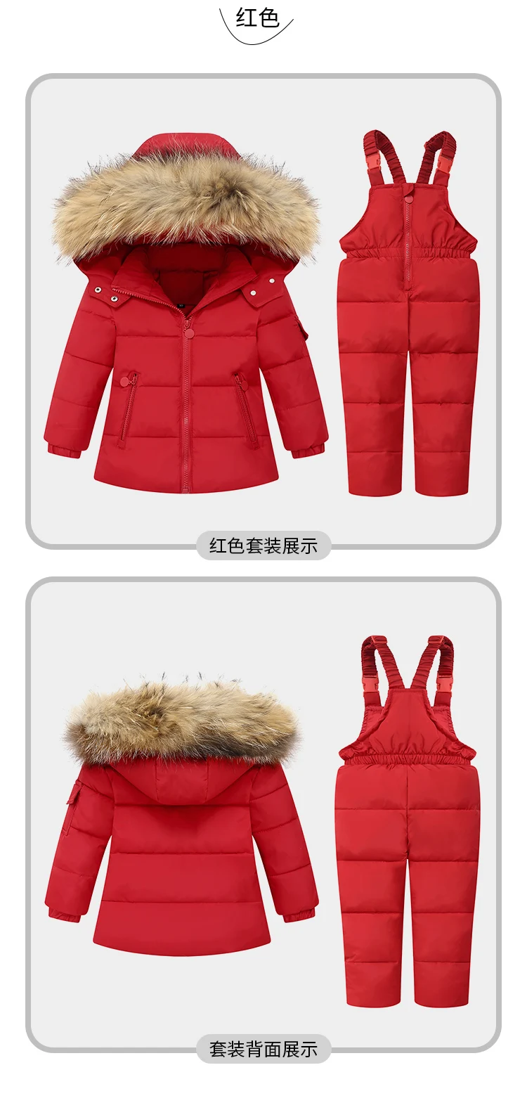 Детский пуховой комбинезон, теплый зимний комбинезон с меховым воротником для маленьких мальчиков и девочек, 2021