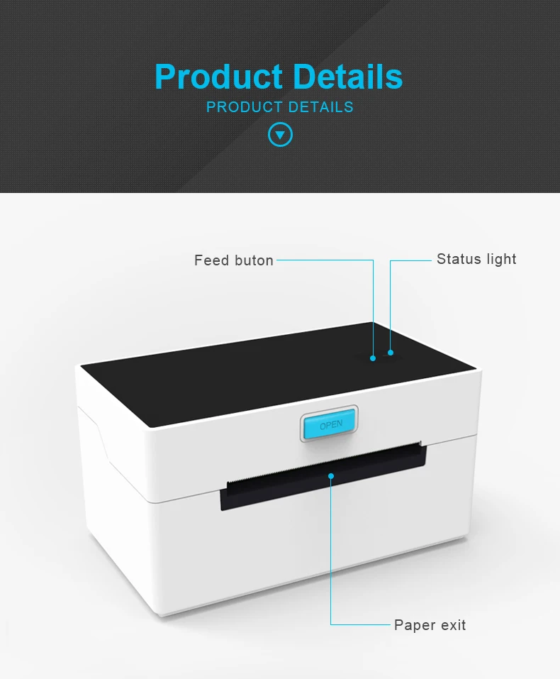 1. Высокая скорость (до 160 мм/сек), четкая печать2. Интерфейс: USB/ USB + LAN/ USB + Bluetooth/ USB + WiFi3. Поддержка непрерывной печати этикеток и чеков4. Ширина бумаги может быть скорректирована, эффективная ширина печати до 104 мм5. Механический шум: менее 60 дБ, подходит для тихой офисной среды6. Поддерживает защиту от перегрева и гарантирует стабильную работу машины