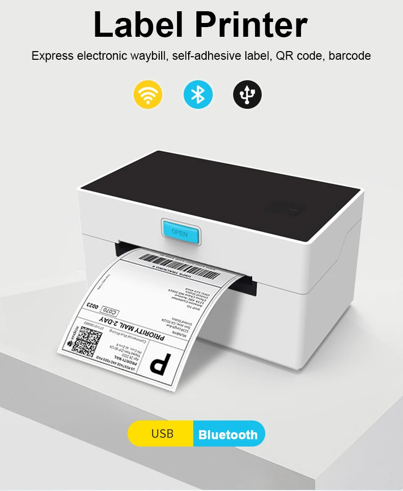 Высокоскоростной Настольный термопринтер USB Bluetooth, устройство для изготовления этикеток, наклейки, принтер штрих-кодов для этикеток Экспресс-этикеток