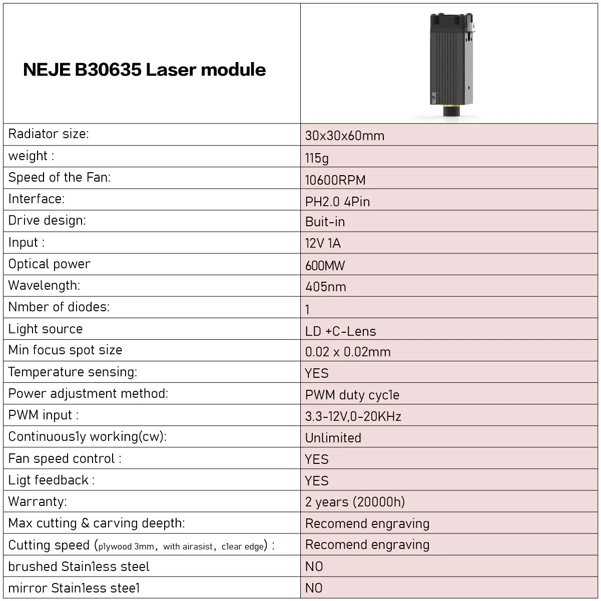 * Он поддерживает более 10 различных функциональных модулей, модуль NEJE имеет превосходный оптический дизайн и надежную работу, что является лучшим и самым гарантированным обслуживанием в настоящее время. Модуль Серии NEJE предоставляет 2 года бесплатной гарантии на нечеловеческие повреждения.