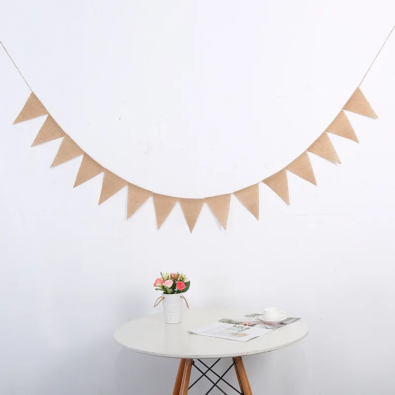 Type1Colorful Jute Linen Flags Pennant Birthday Bunting Banners