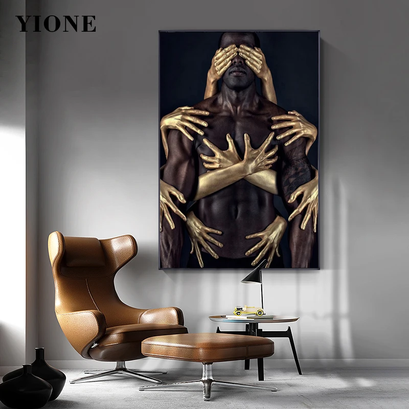 Холст с изображением обнаженной пары, влюбленных, современный черны...