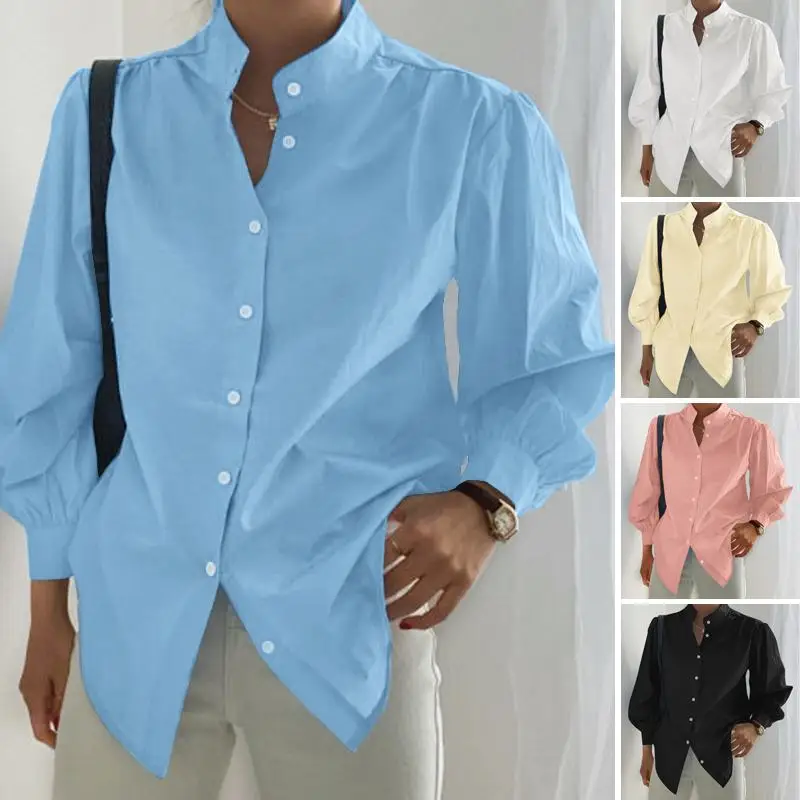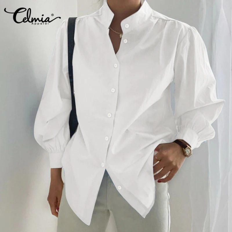Модные Асимметричные рубашки Celmia с воротником-стойкой, Женская Повседневная Свободная блузка, элегантные офисные женские топы с пышными рукавами для работы