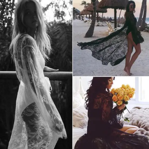 Номер моделиSexy Womens Lace Mesh Hollow Night Dress Robes See-Through
