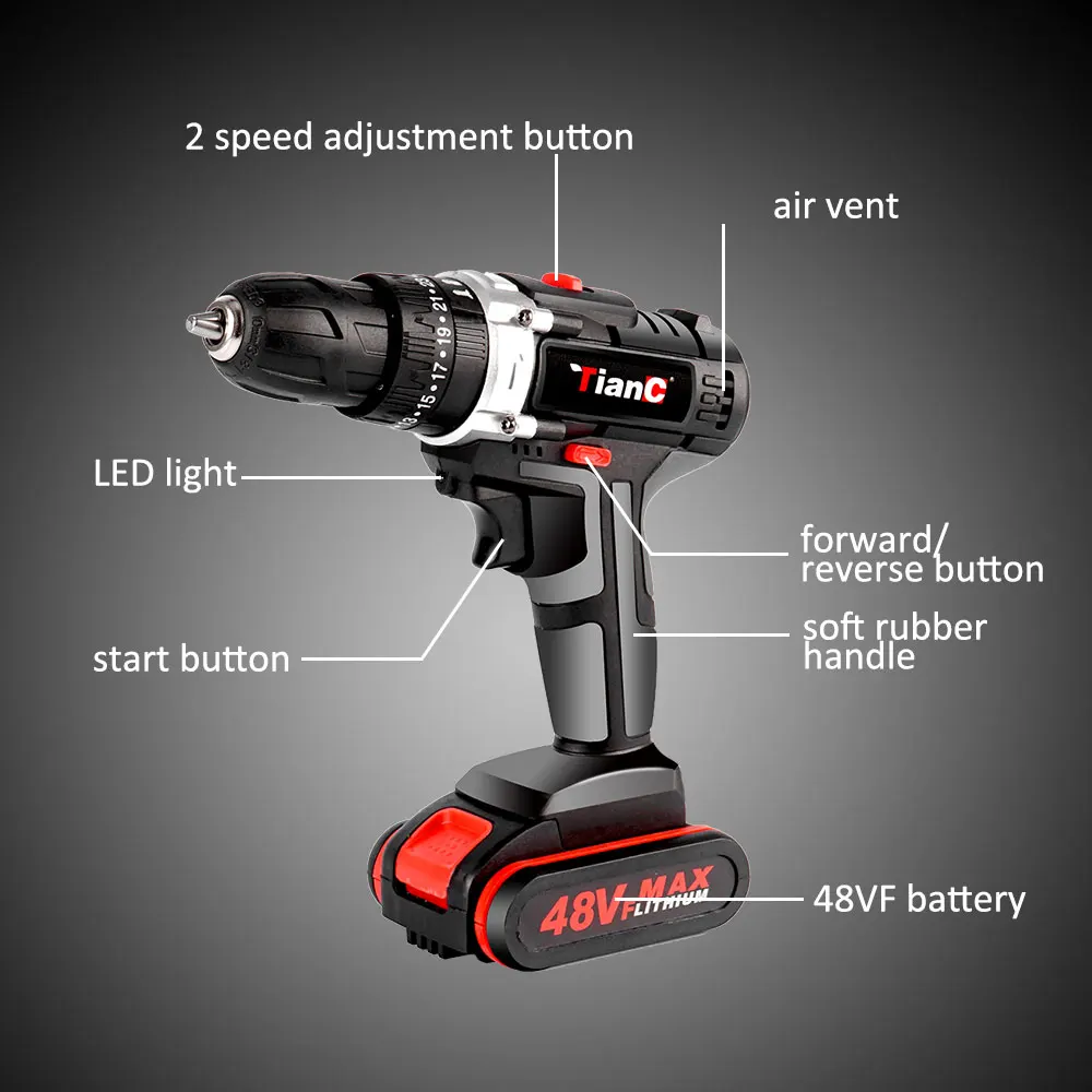 21V Аккумуляторная дрель Электрическая отвертка ручная дрель электрическая Ударная дрель 25 + 3 знака после крутящий момент бытовой Мощность инструменты