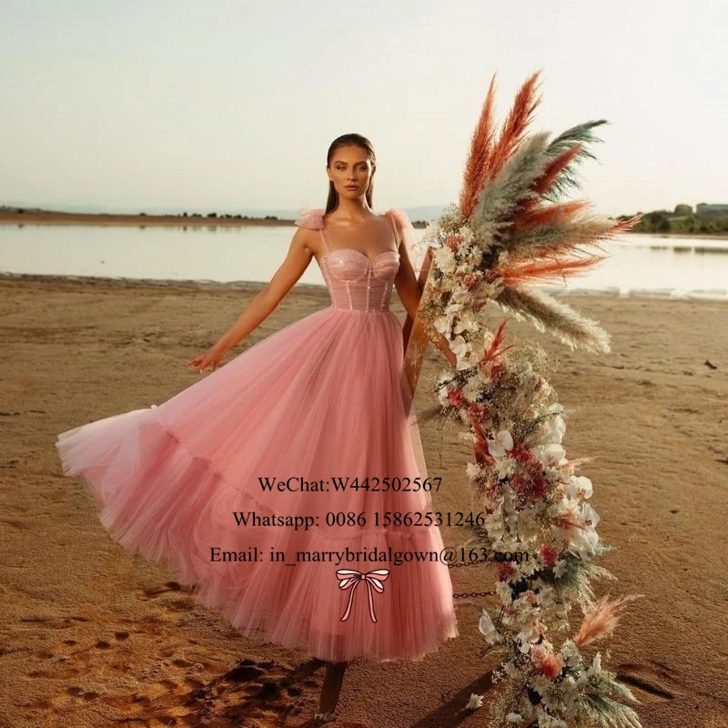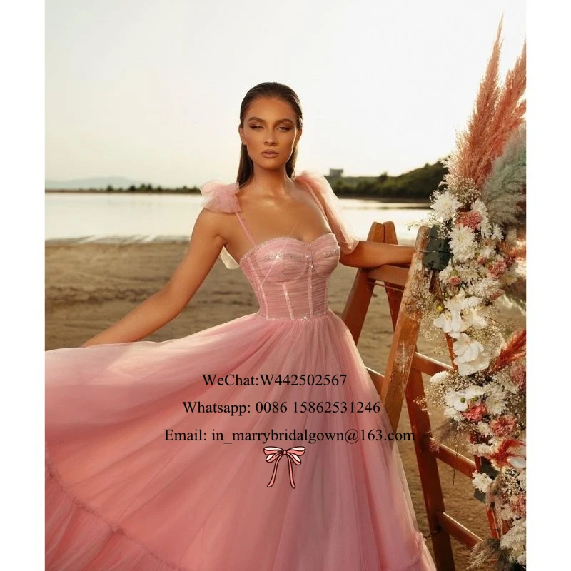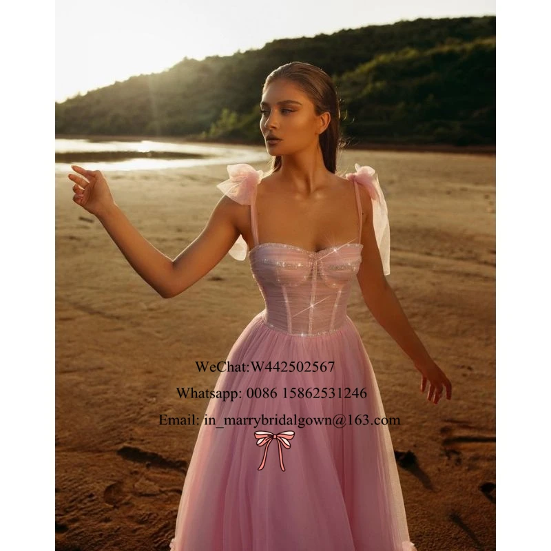 Розовый к требованиям заказчика; Сверкающие; Длинные платья для выпускного вечера 2021 линия размера плюс оборки Тюль простого покроя для девочек Enegagement торжественное мероприятие вечерние платья для женщин
