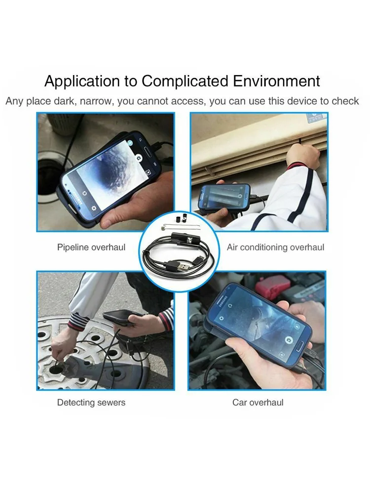 Пожалуйста, сначала проверьте модель вашего телефона. Эндоскоп с гибким полужестким кабелем, который может сгибаться и удерживать форму, чтобы получить доступ к широкому разнообразию узких мест, таких как изогнутые отверстия или трубы. Это имеет огромное значение для указания и позиционирования камеры для различных углов использования