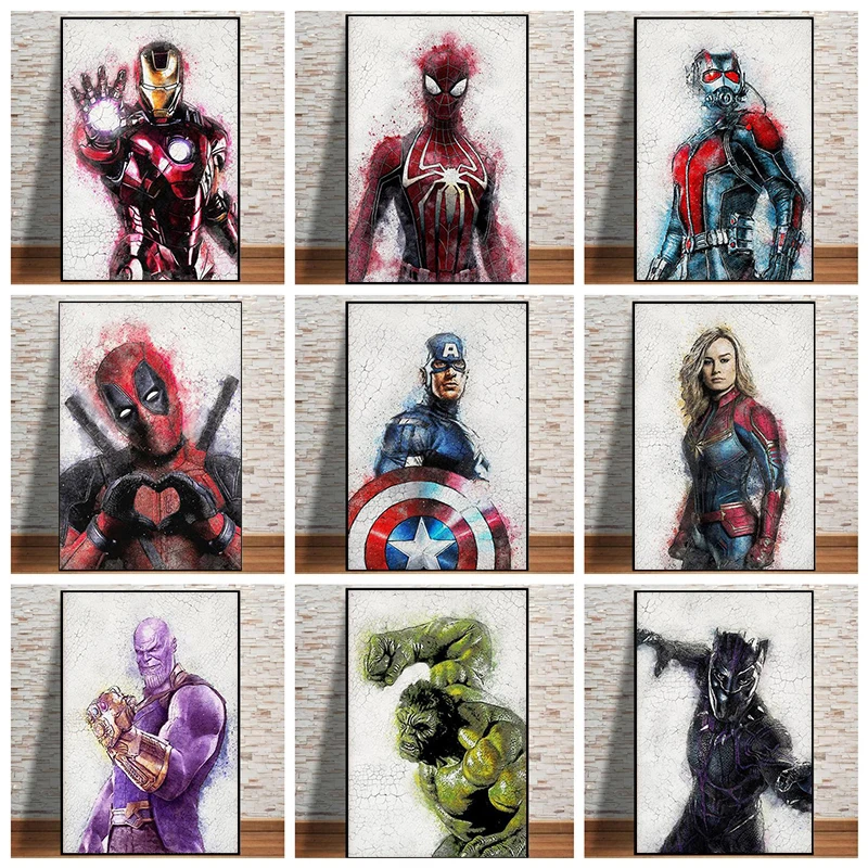 Акварельные картины Марвел, Железный человек, Человек-паук, холст, ...