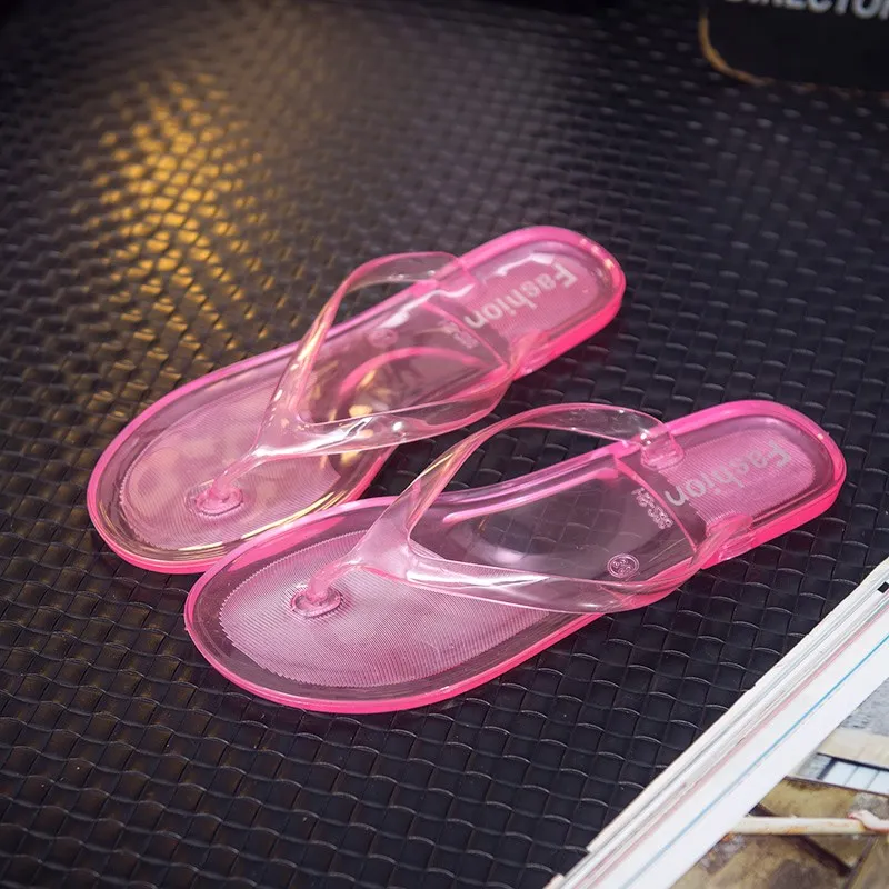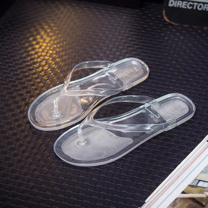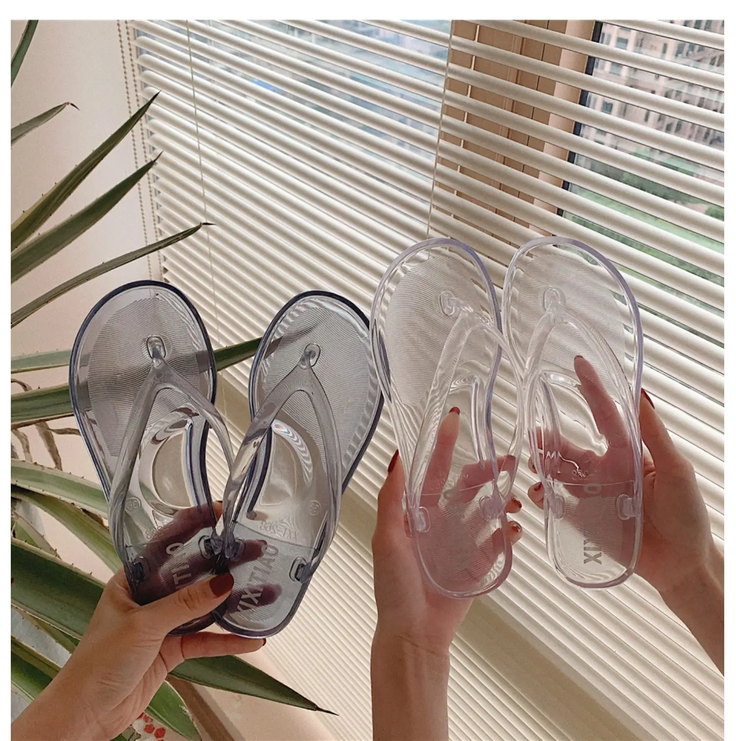 Вьетнамки; Женская обувь на плоской подошве; Прозрачная пляжная обувь; Женские сандалии-шлепанцы на нескользящей подошве шлепанцы со стразами в Корейском стиле; Шлепанцы для ванной для женщин из пластика