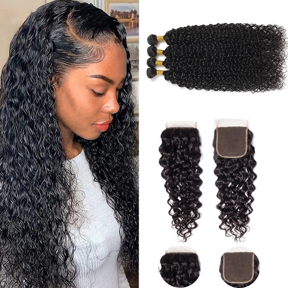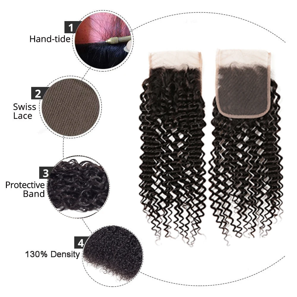 BAHW волосы прозрачные 4x4 кружевные застежки с человеческими волос...