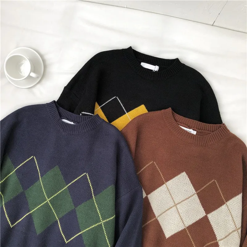 Женский вязаный свитер Argyle, осенне-зимний пуловер оверсайз с кру...