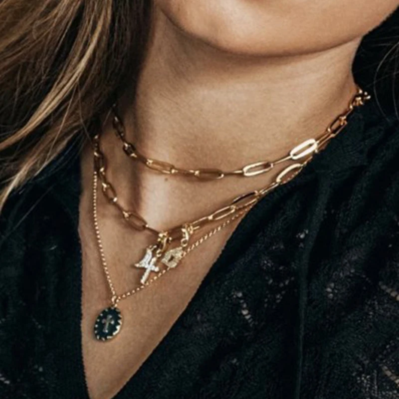Ожерелье ROXI Bohe с элементом ключицы для женщин ожерелье со звездой Луной и крестом цепочка 2021 модные ювелирные изделия подарок на день рождения повседневные ожерелья