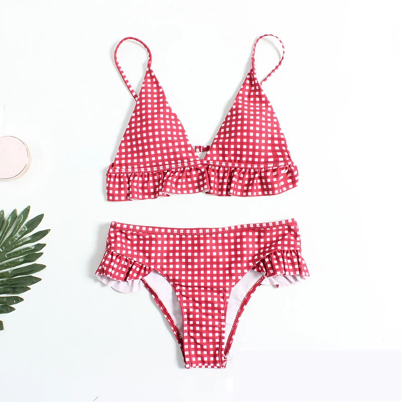 Комплекты бикини, черно-белый купальник в клетку с оборками, женские сексуальные купальники из двух предметов, пляжные купальные костюмы для девочек