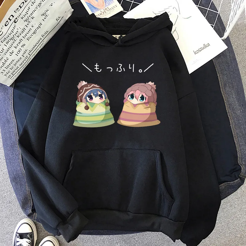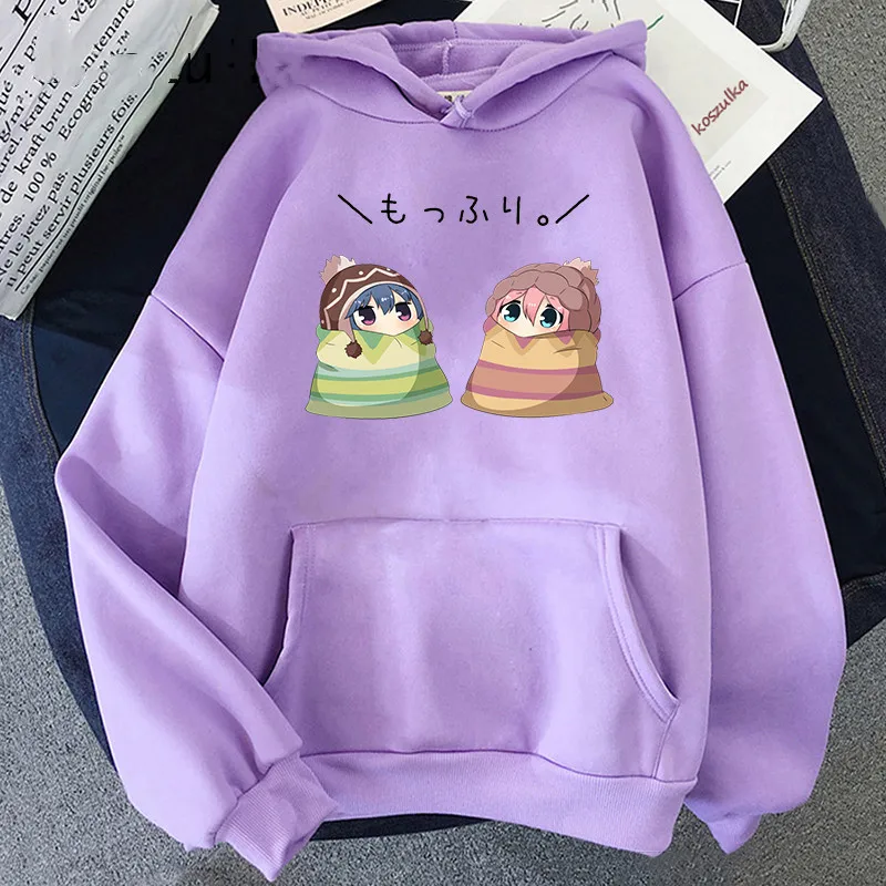 Смешные Толстовки с рисунком аниме yulu лагерь непринужденный лагерь надхикоРин Харадзюку манга кавайная Одежда для девочек женские модные зимние толстовки