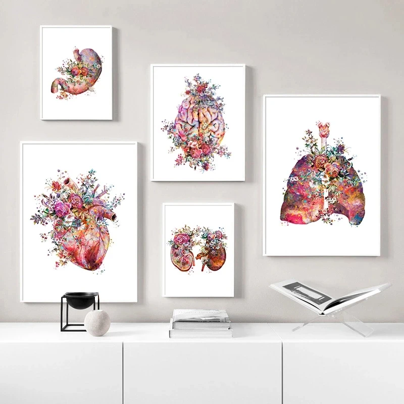 Красочная Анатомия искусство медицинский Холст Картина Цветочные органы Сердце легкие плакат печать обучение Больница настенные картины Домашний декор