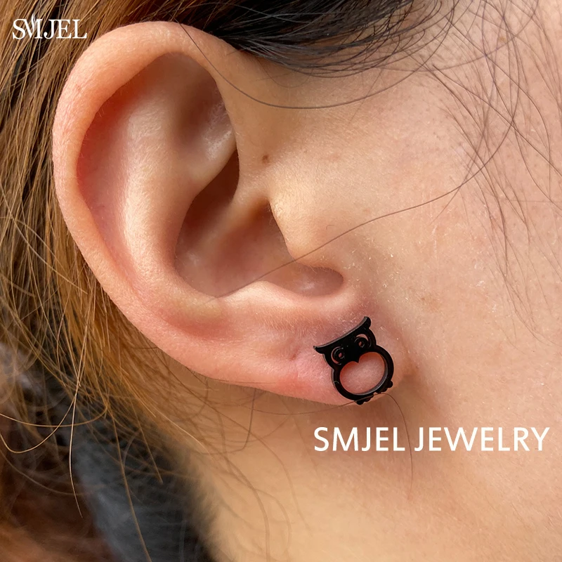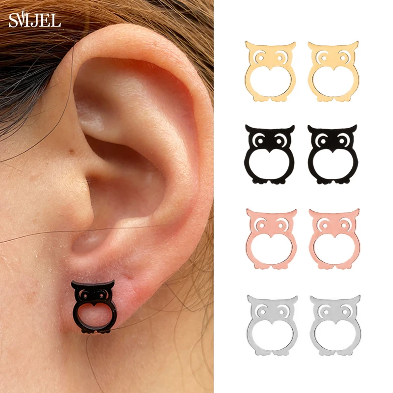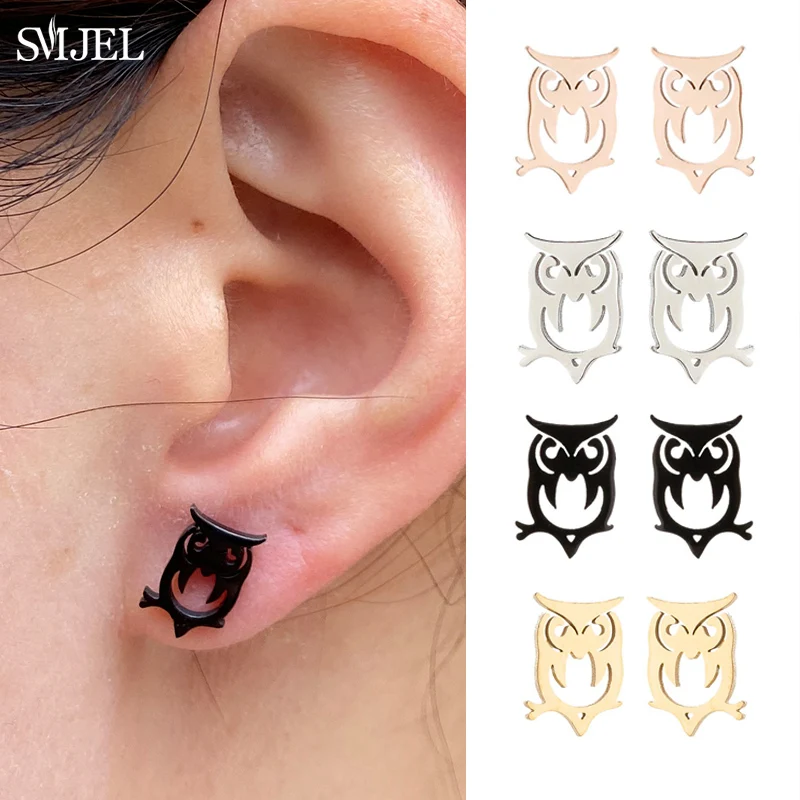 Винтажные женские серьги в стиле панк с черной совой, маленькие, богемные, серьги-гвоздики с животными