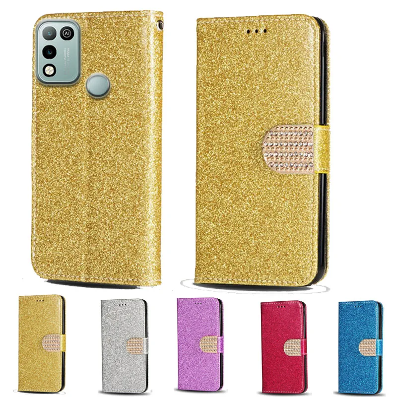 Роскошный блестящий кожаный флип-кошелек с бриллиантами для itel A1...