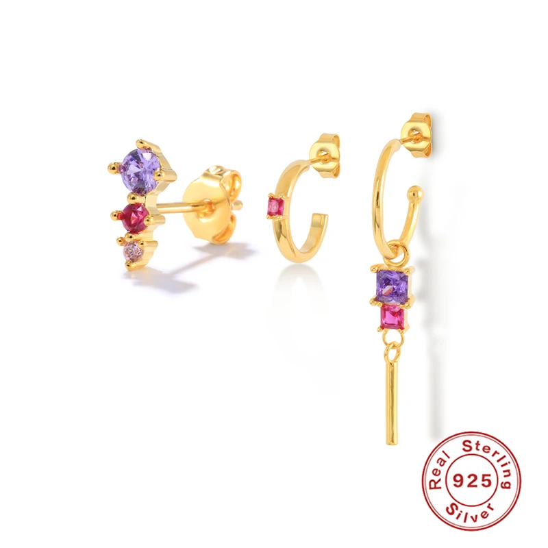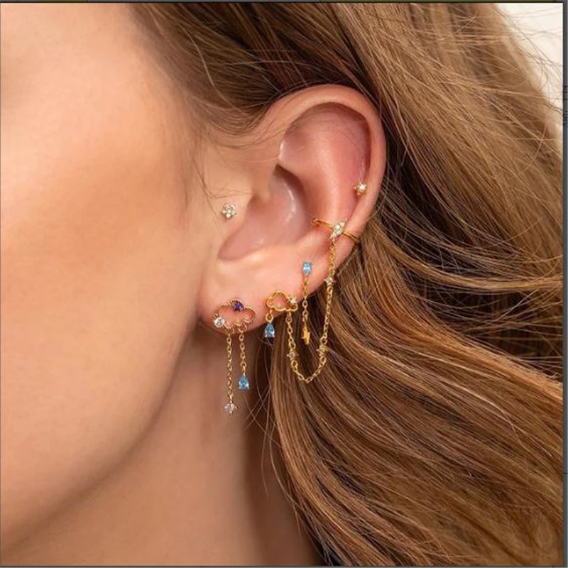 Aide Простые Красочные циркониевые серьги-гвоздики с кисточками и цепочкой для женщин, серьги в стиле панк с ушками для ногтей, сережки с пряжкой, серебрянное покрытие