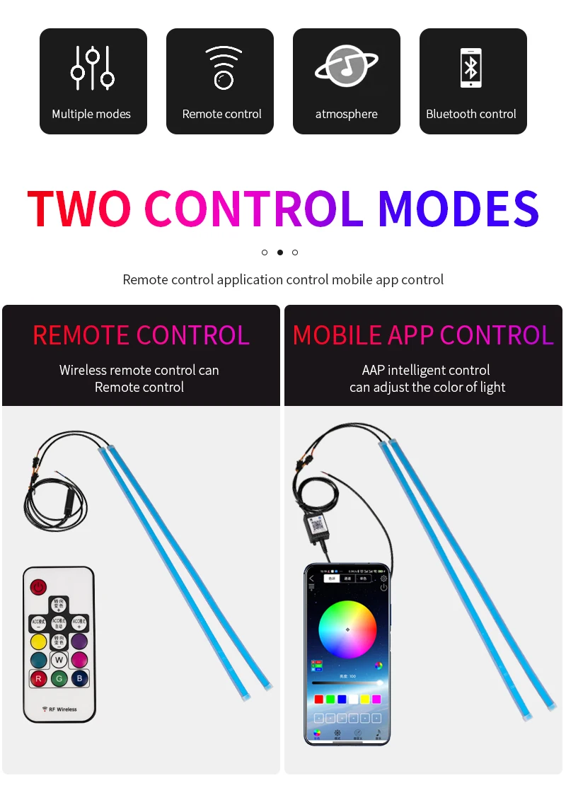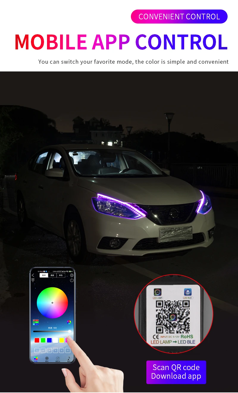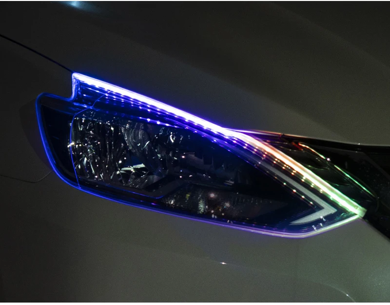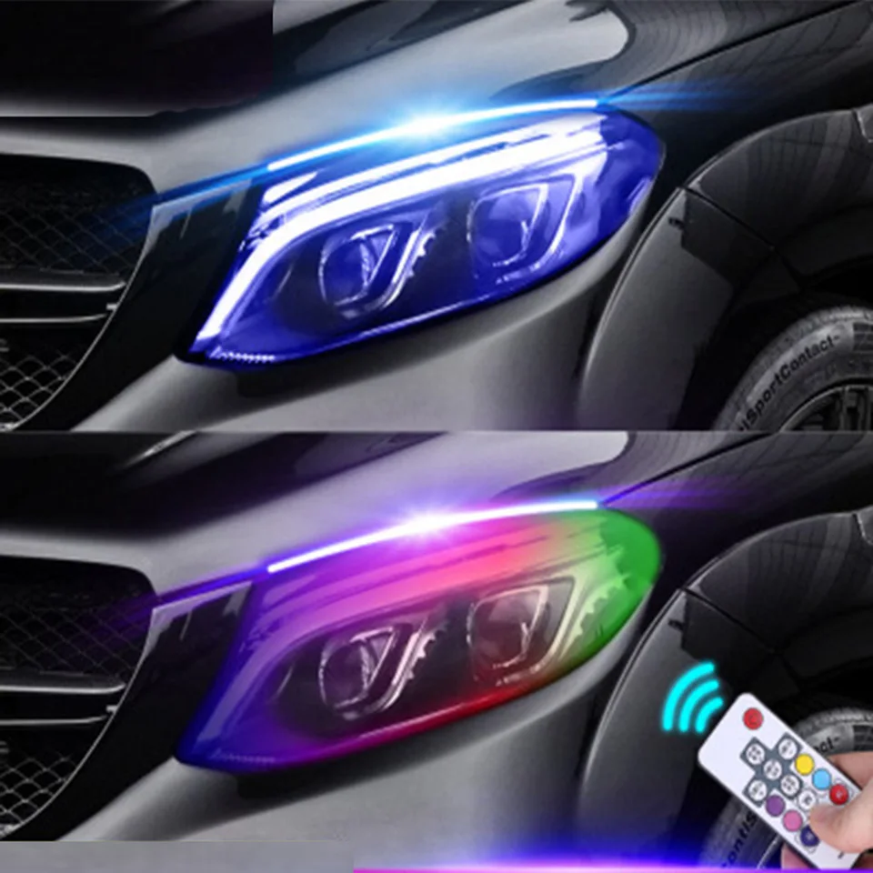 2 шт. автомобиля светодиодный DRL лампы ленты течет Габаритные огни RGB приложение пультом дистанционного управления 12V гибкие Водонепроницаемый огней сигнала поворота