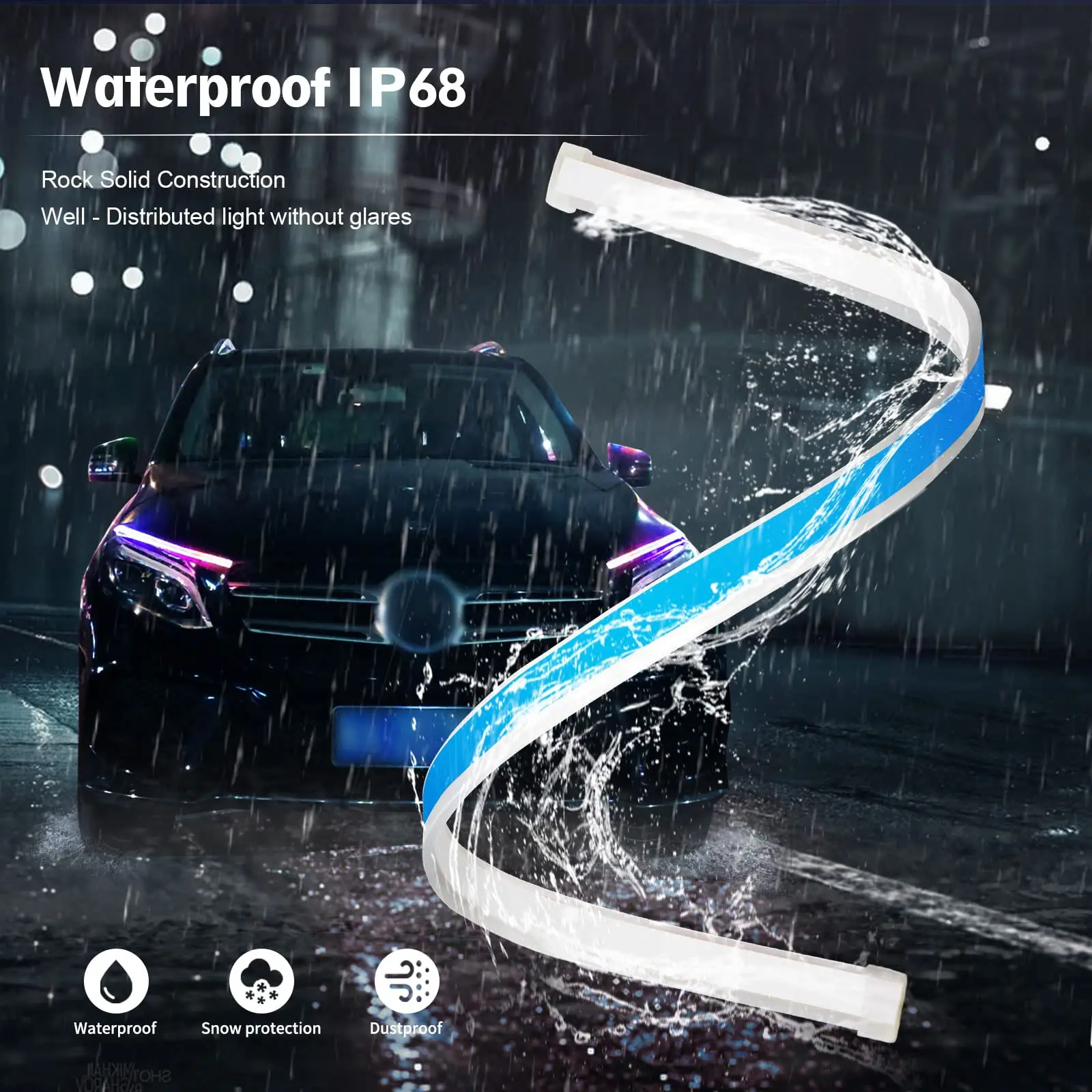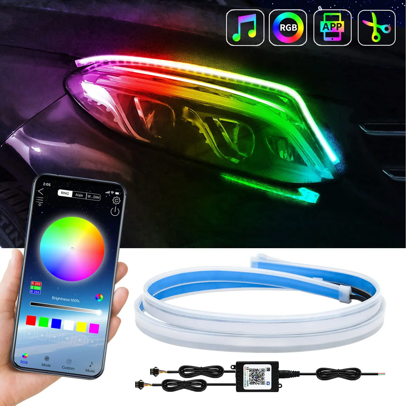 2 шт. Автомобильный светодиодный DRL лампа полоса течет дневные ходовые огни RGB приложение дистанционное управление 12 В Гибкая Водонепроницаемая фара указатель поворота