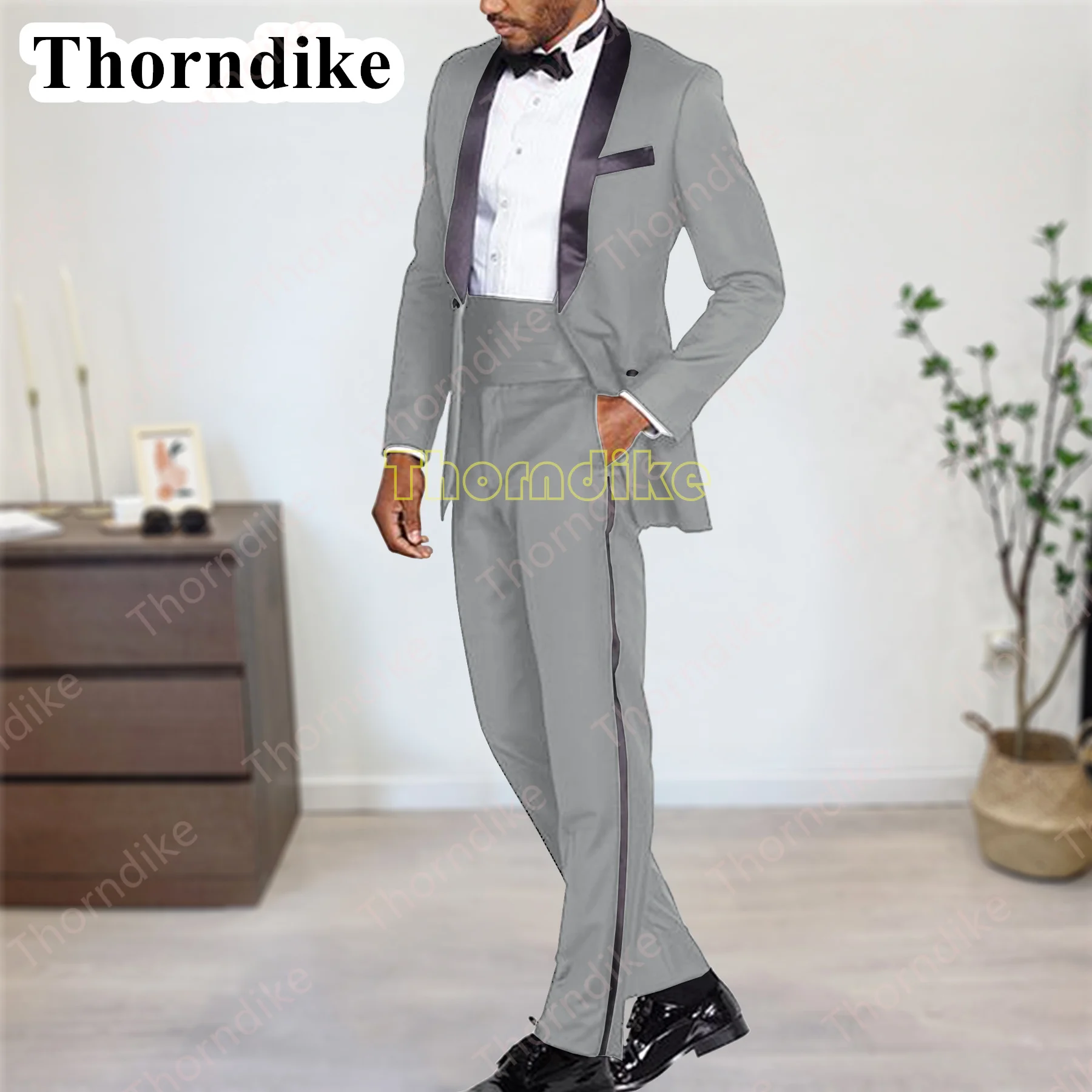 Официальный серый костюм Thorndike для мужчин, 2 предмета, индивидуальный заказ, приталенный костюм для жениха, Лучший человек, свадебное платье, смокинг, пиджак, брюки с боковыми полосками