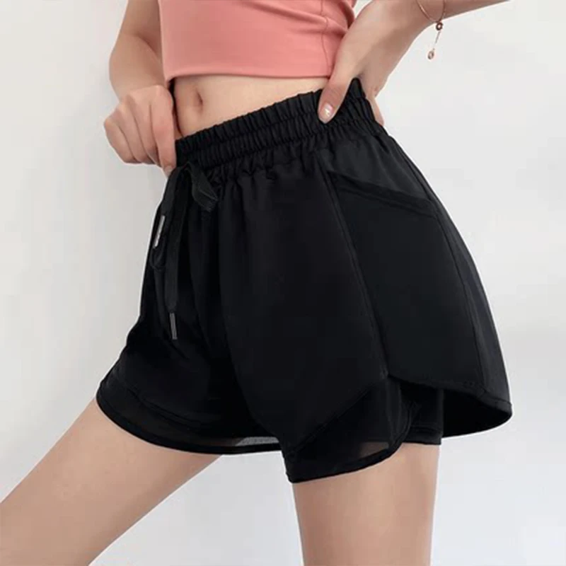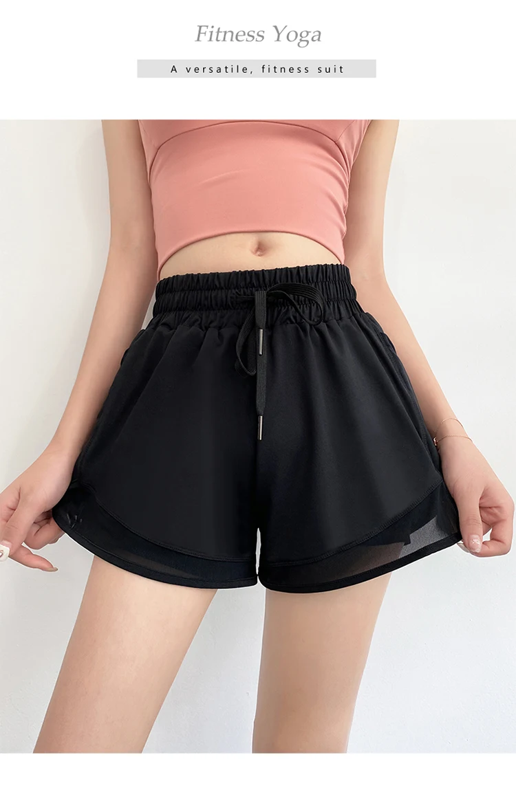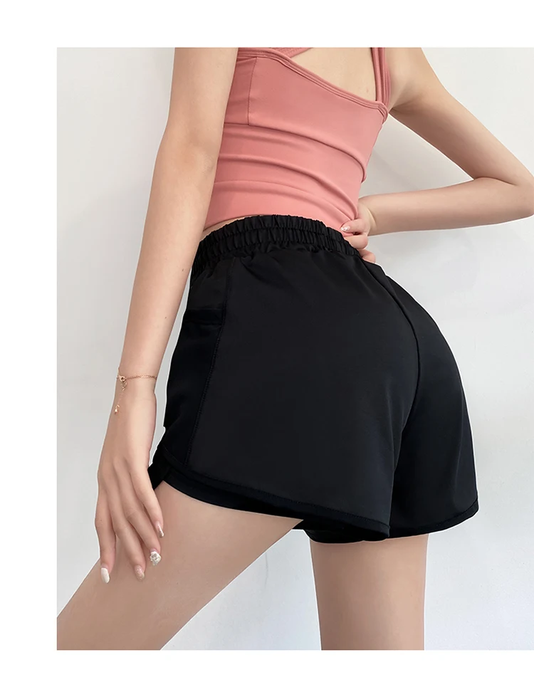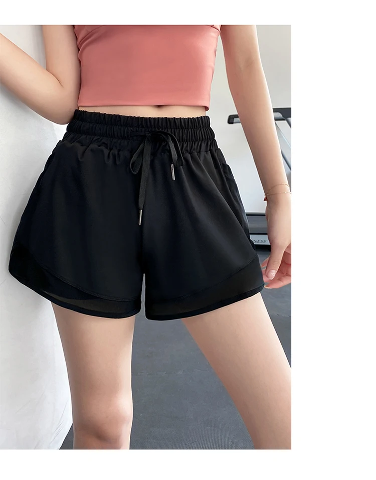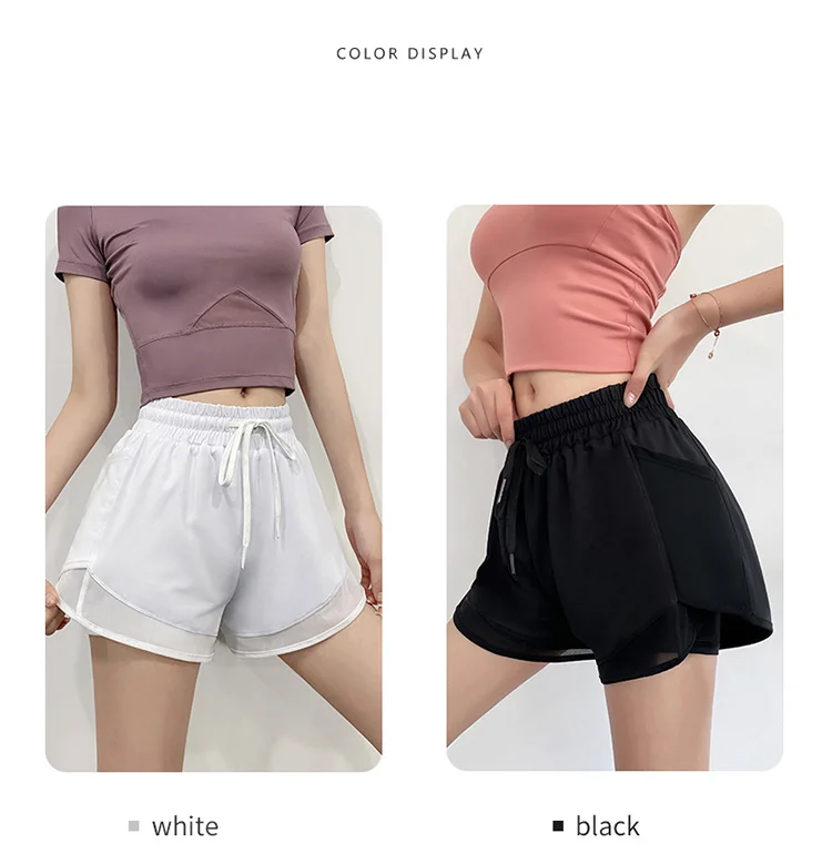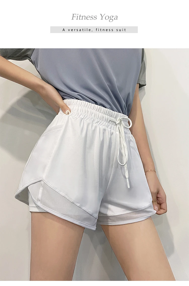 Женские эластичные спортивные шорты с высокой талией для тренировок и активного фитнеса, дышащие шорты для йоги 2 в 1, двухслойные спортивные шорты для бега
