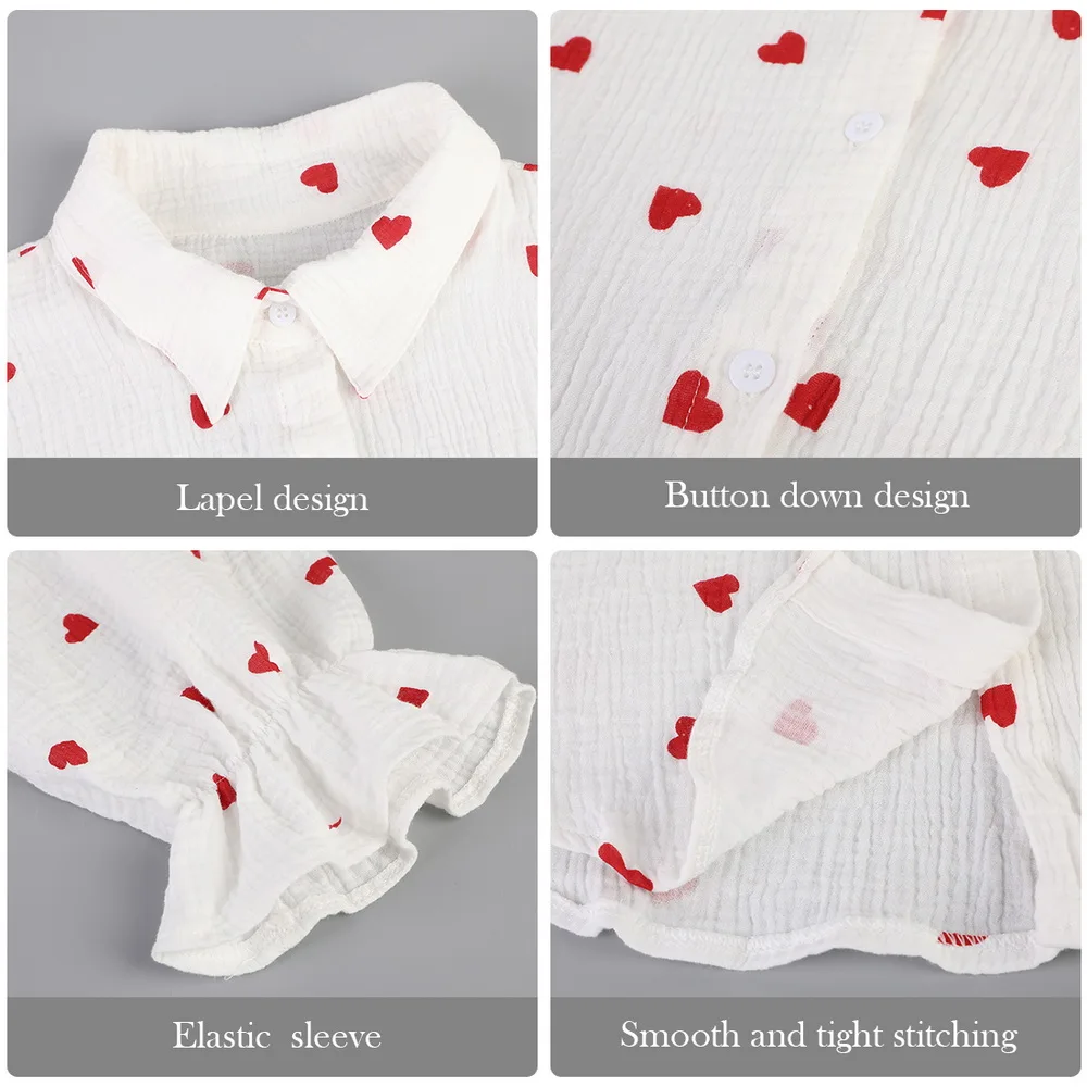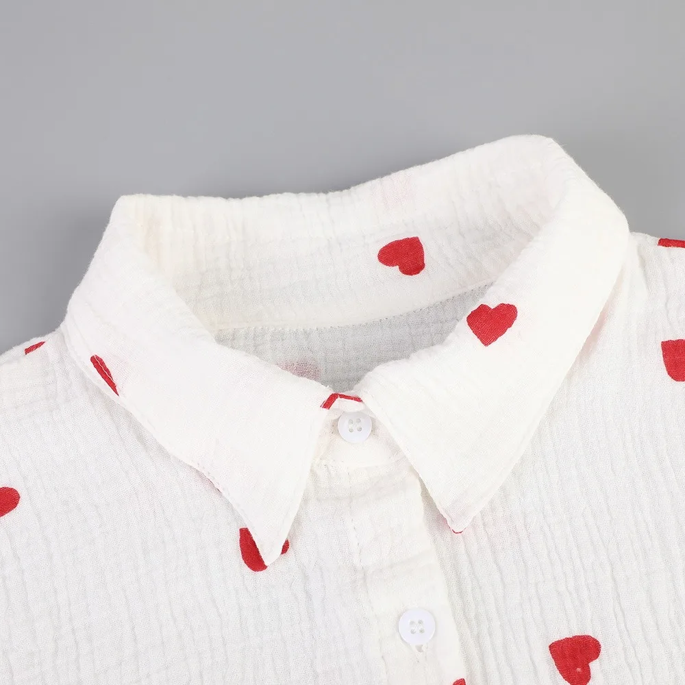 Fashion Cute Heart Print BlouseSummer Turn-Down Collar Tops