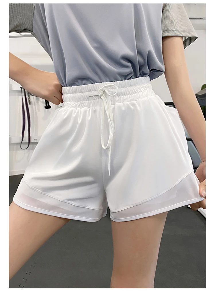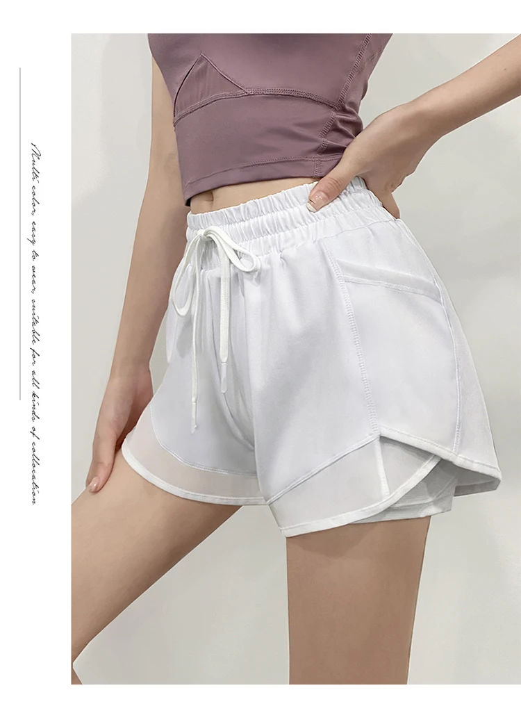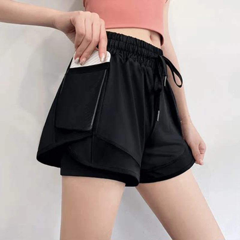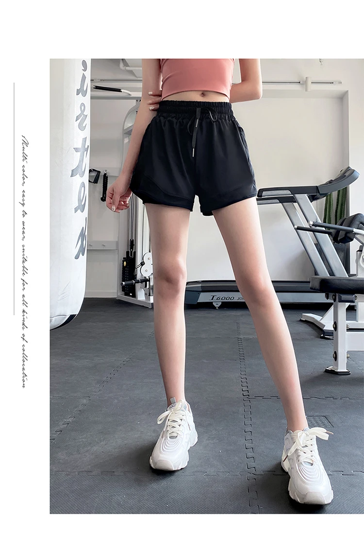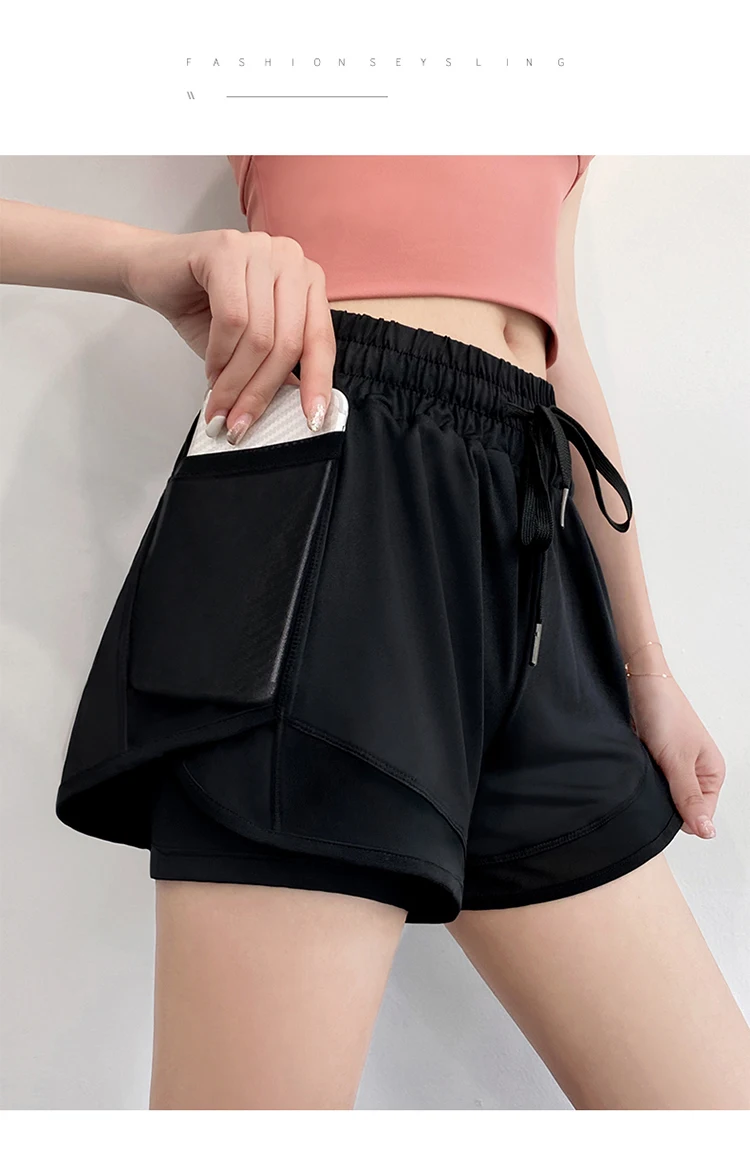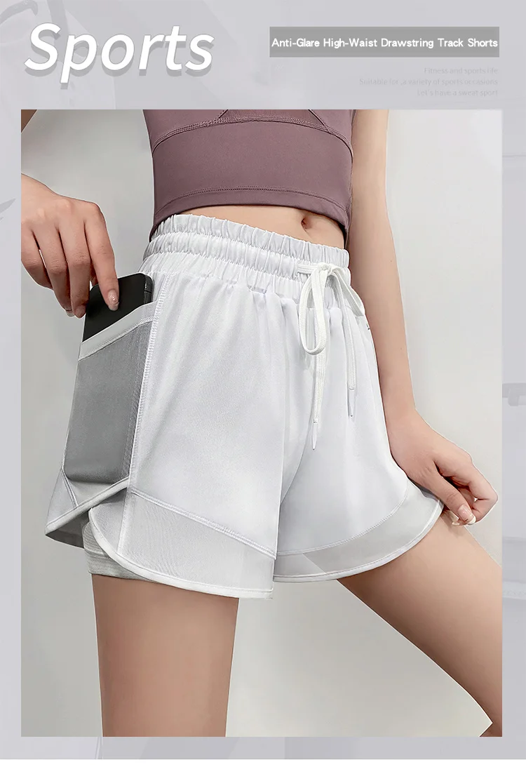 Женские эластичные спортивные шорты с высокой талией для тренировок и активного фитнеса, дышащие шорты для йоги 2 в 1, двухслойные спортивные шорты для бега