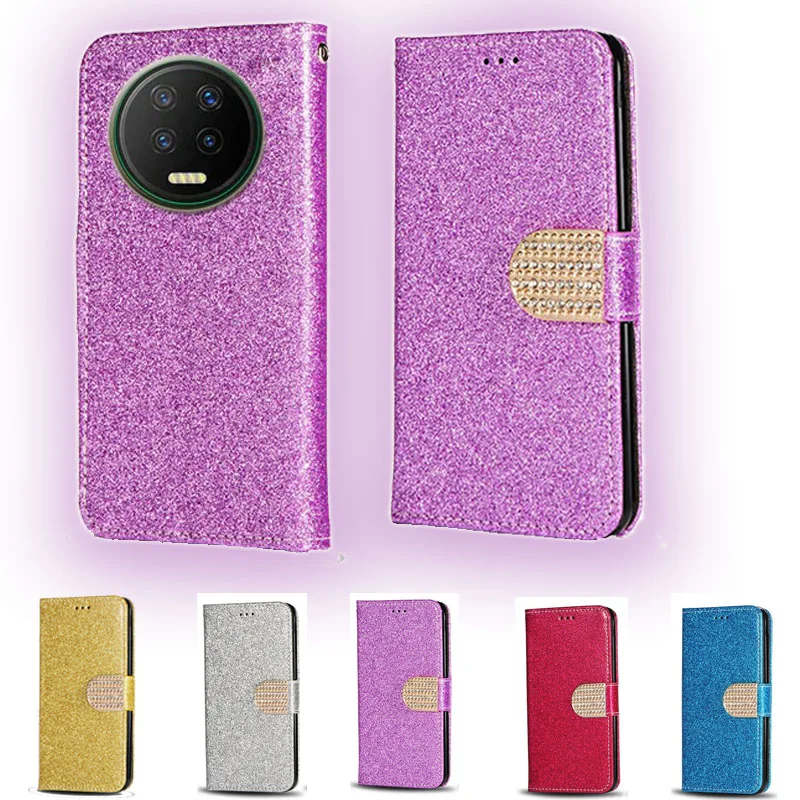 Чехол-книжка для телефона Infinix Note 7, кожаный, с отделением для карт, с блестками и бриллиантами, чехол для телефона