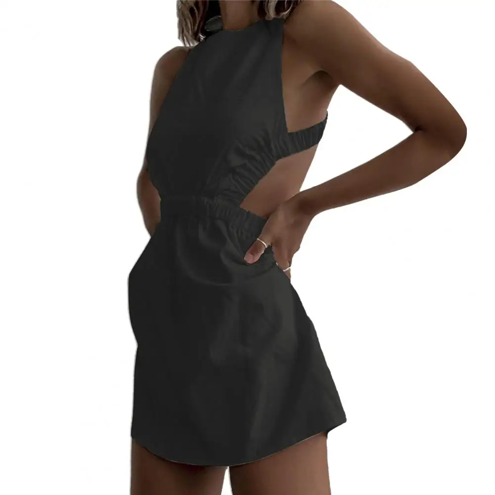 Женское однотонное платье без рукавов, с завязками через шею, с эластичной талией, для вечеринки, летнее сексуальное платье для офиса