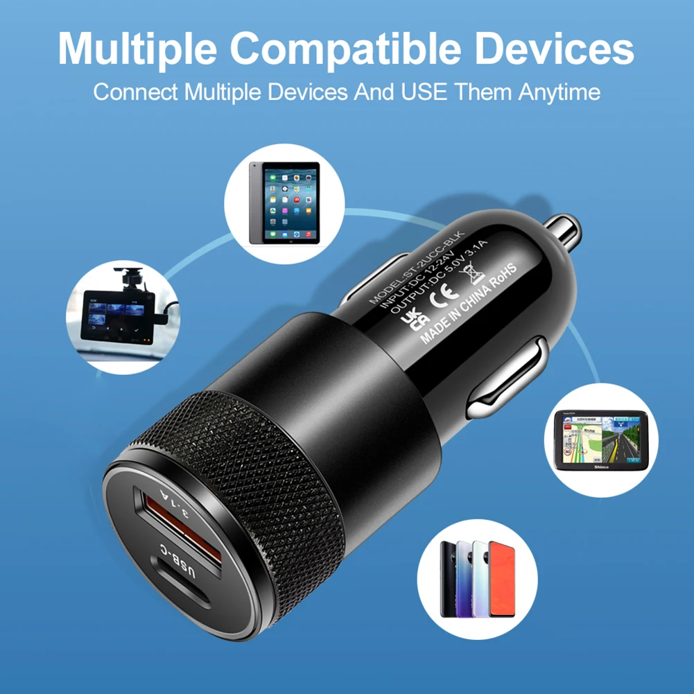 Мини USB Автомобильное зарядное устройство типа C 3.1A 15 Вт PD быстрое зарядное устройство быстрой зарядки адаптер для Мобильный телефон iPad для Xiaomi авто мобильный телефон зарядки