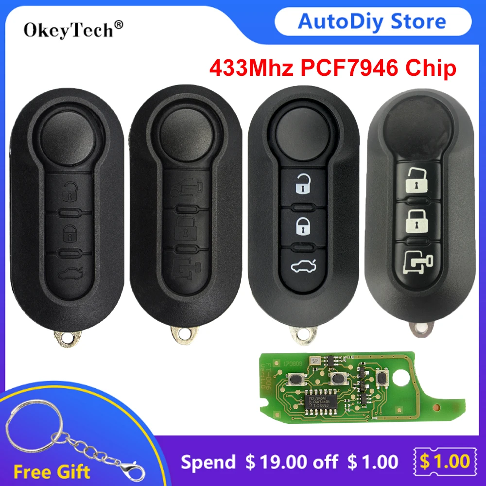 Ключ дистанционного управления Okeytech, 3 кнопки, 433 МГц, чип PCF7946, ключ дистанционного управления для Fiat 500 Doblo Qubo Grande Punto 2006-2013 Delphi BSI