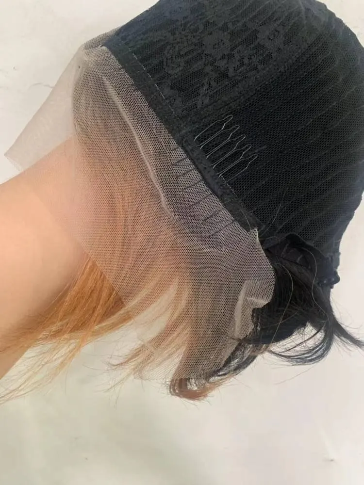 Парик с коротким вырезом фальшивой, парик из человеческих волос с эффектом омбре, светлые кружевные прямые парики, парики из человеческих волос спереди на сетке для черных женщин