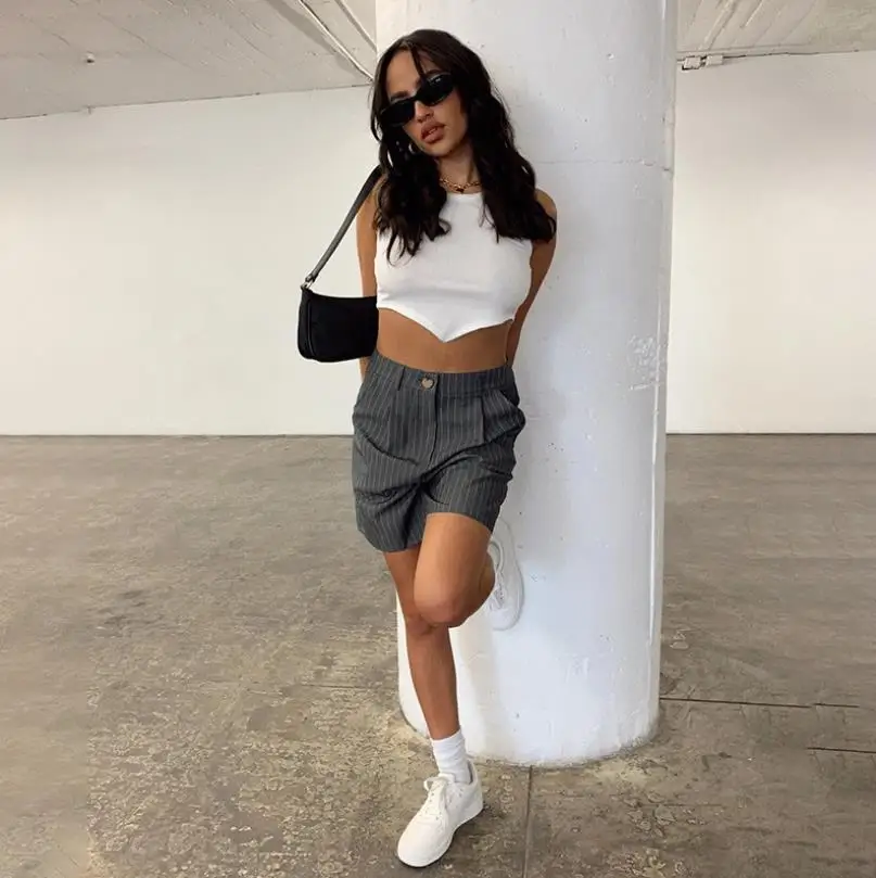 Мы любим сплошной цвет и ассиметричный дизайн, короткая стильная майка делает вас более стильным и очаровательным.