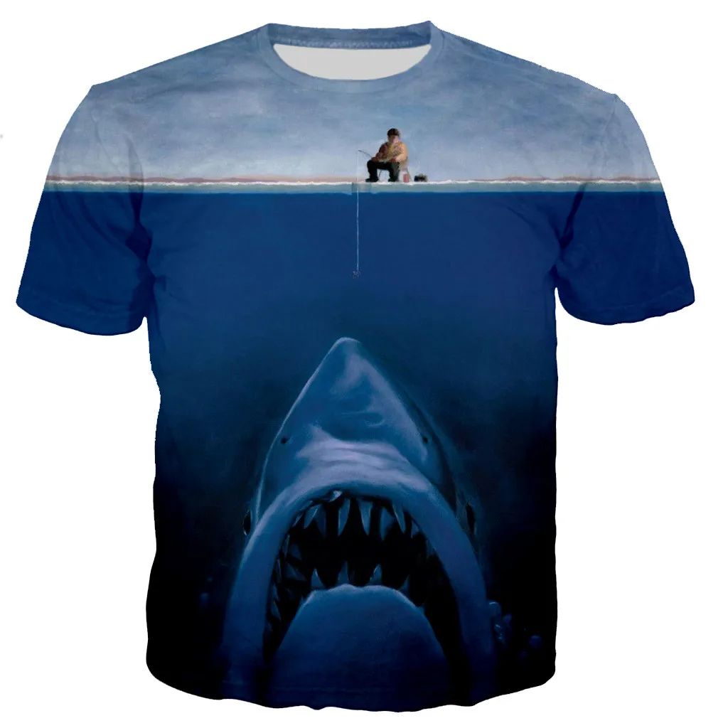 Лето 2021, модная одежда для рыбалки, футболка с 3D принтом акулы, ...