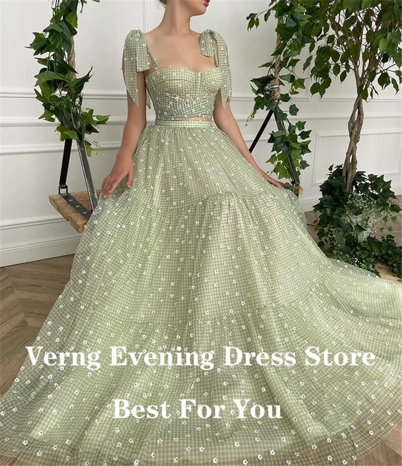 Verngo 2021 сельских Тюлевое платье с цветами Двойка вечерние платья с лямками и милая бюстье длинные выходные туфли на выпускной страна Shoot