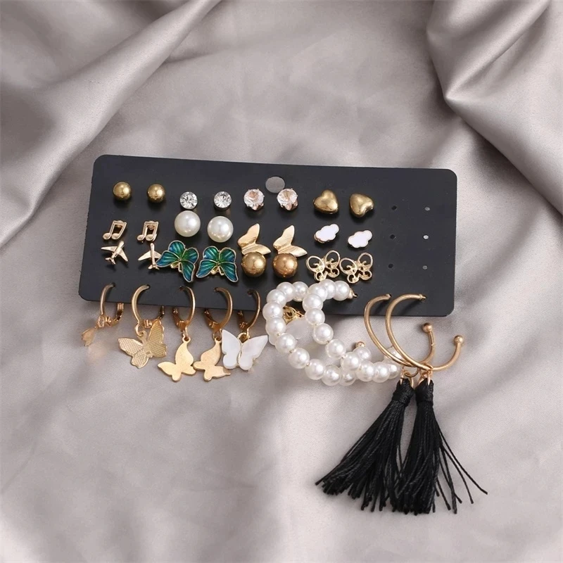Женские серьги-гвоздики в виде бабочки, жемчужные стразы, набор жемчужных сережек для женщин, богемное ювелирное изделие, геометрический кристалл, сердце