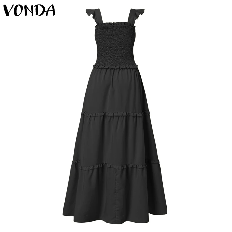 Женское длинное платье VONDA 2022, летнее праздничное длинное платье макси, повседневное однотонное кружевное плиссированное платье без рукавов, S-