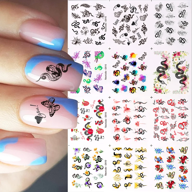 12 шт.компл. водные переводки волнистые линии полоски Цветок Цветочные листья водные переводные наклейки абстрактное лицо змея французский геометрический слайдер