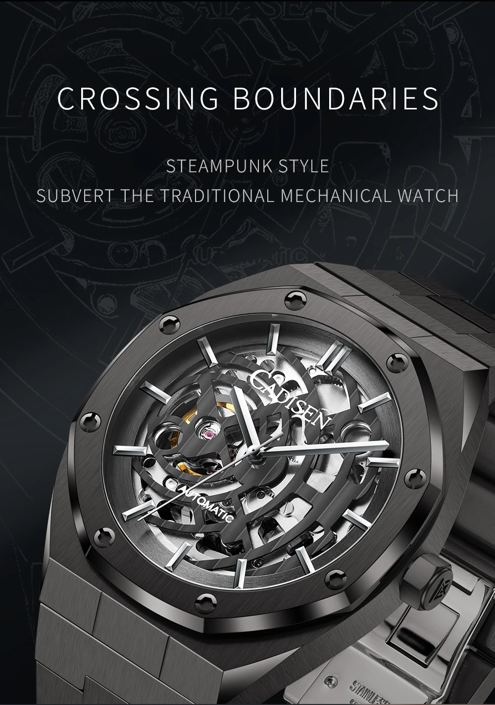 2021 CADISEN Новый Для мужчин, мужские часы, Нержавеющаясталь автом...