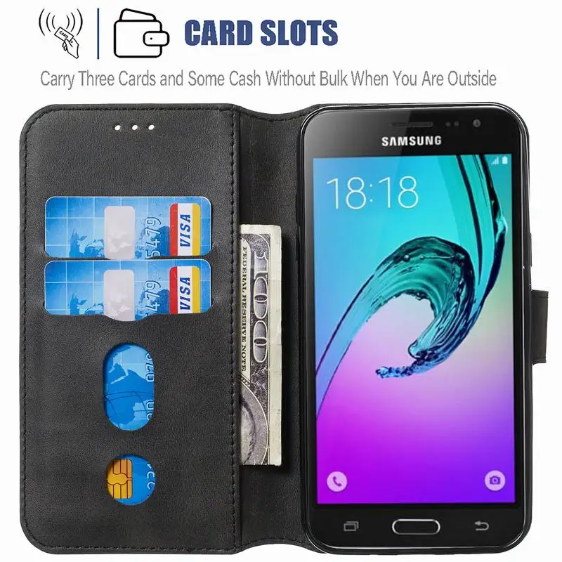 Feature 1Wallet Leather Flip Case For Samsung J3 2016 Cover