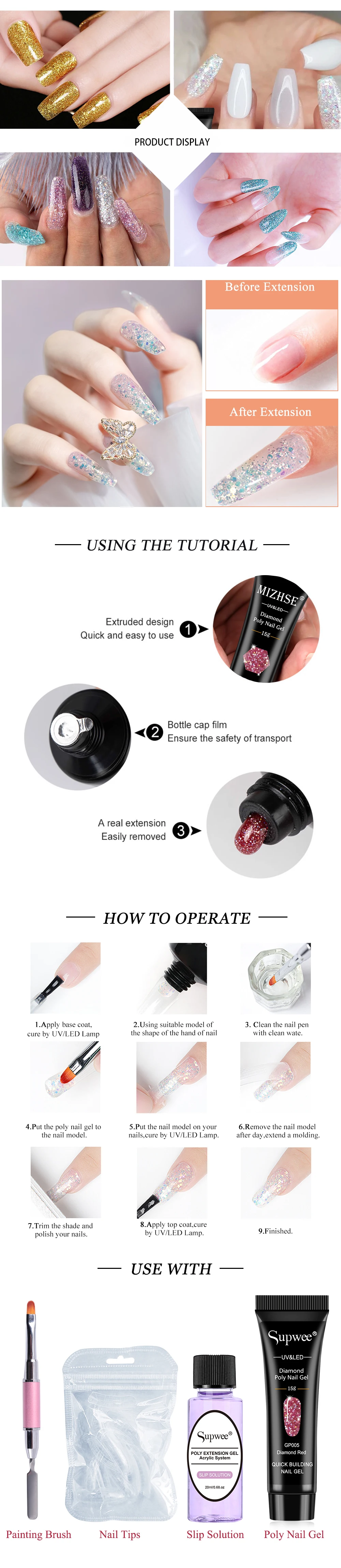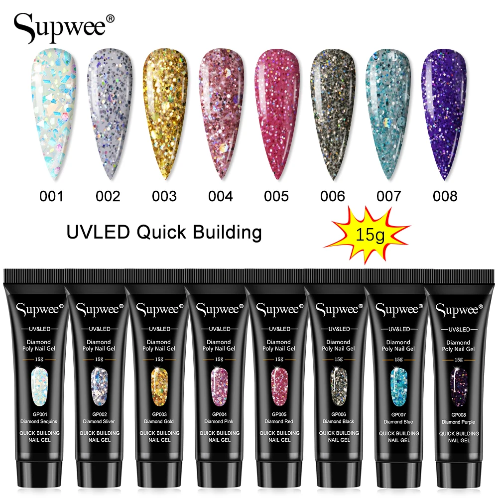 Полиакриловый гель для ногтей SUPWEE, 15 г, отмачиваемый УФ светодиодный кристаллический акриловый гель для наращивания ногтей, искусство, дизайн