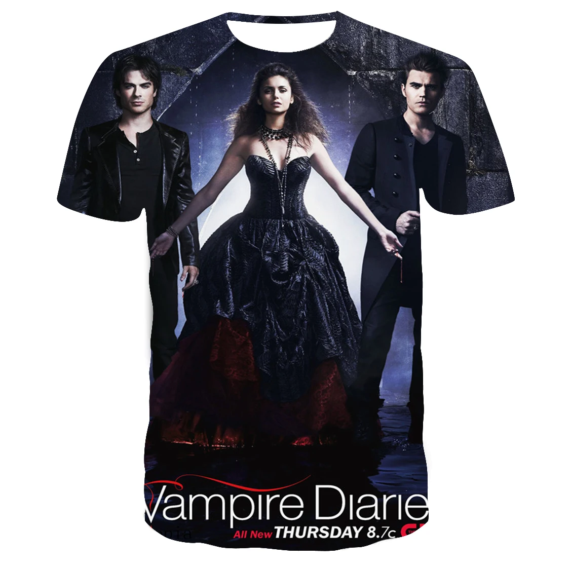 Футболка Мужскаяженская с 3D принтом дневников вампира, модная руба...