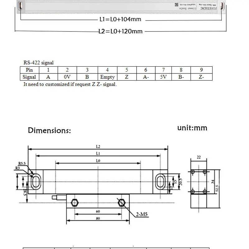 RS422 5um тонкий оптический стеклянный шкала линейный энкодер 120 1...