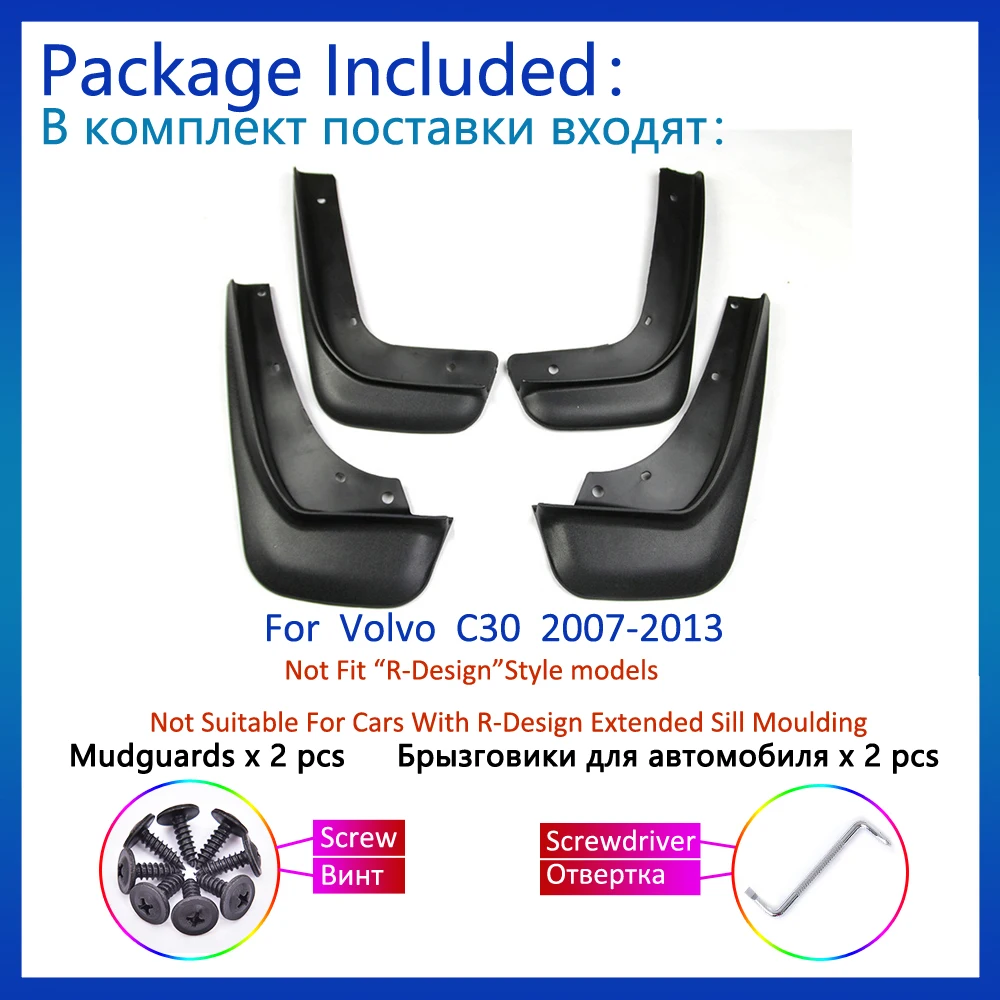 Для Volvo C30 2007-2013 автомобильный брызговик 4x крыло брызговиков Стайлинг Аксессуары Новое обновление брызговик щиток защита от брызг 2007 2008 2009 2010 2011 2012 2013