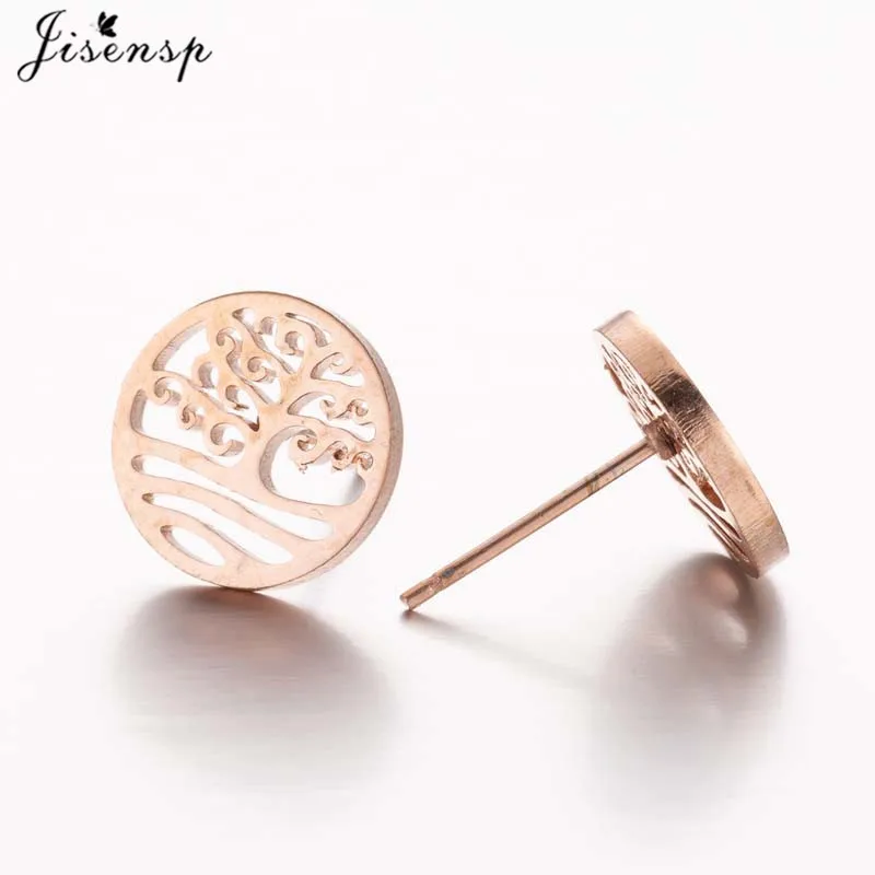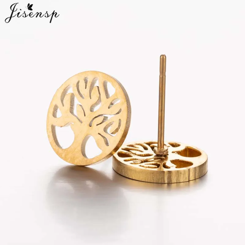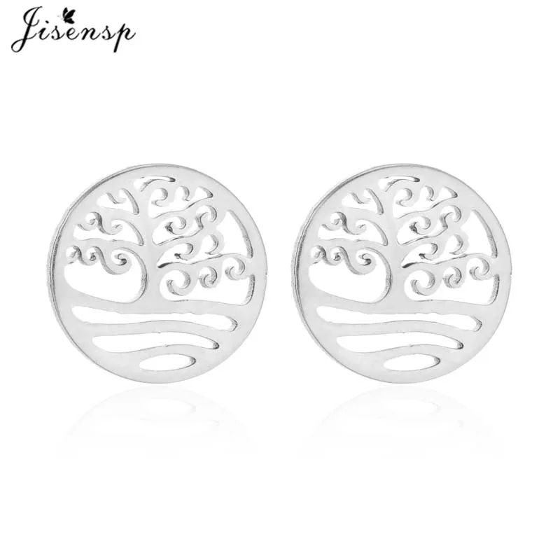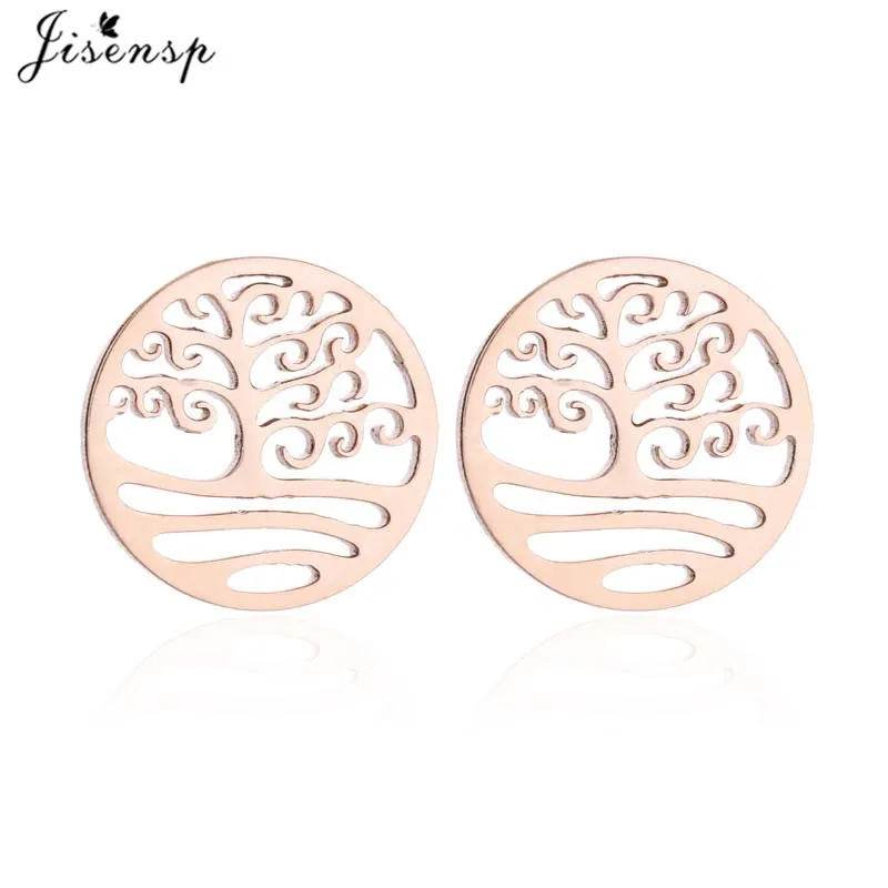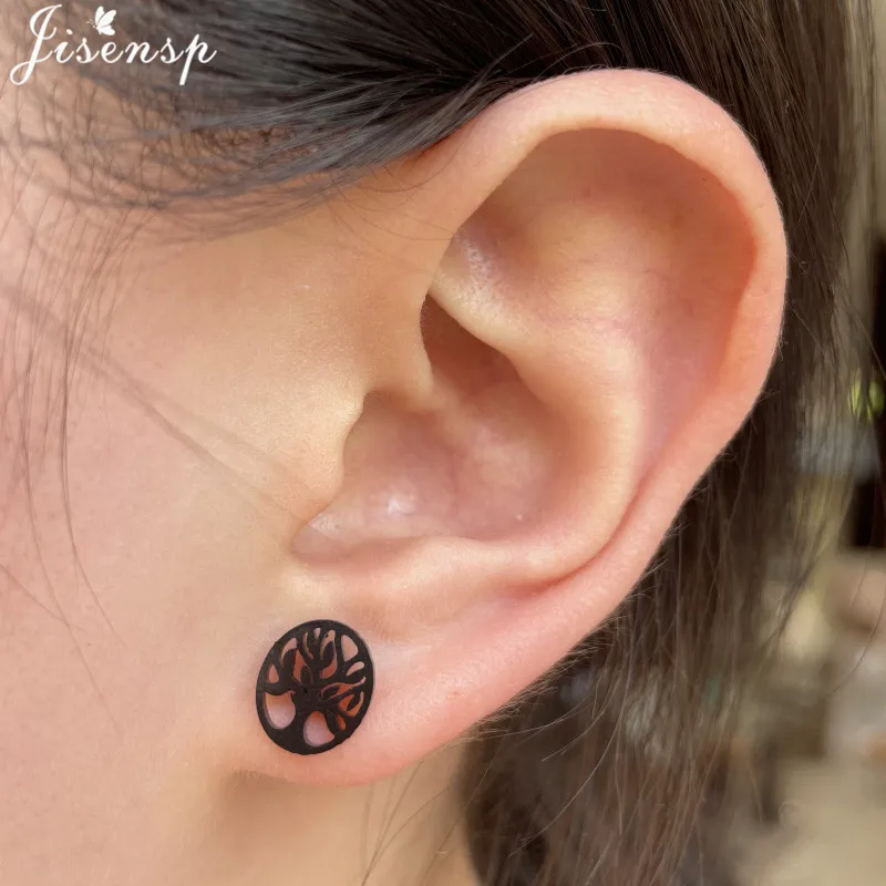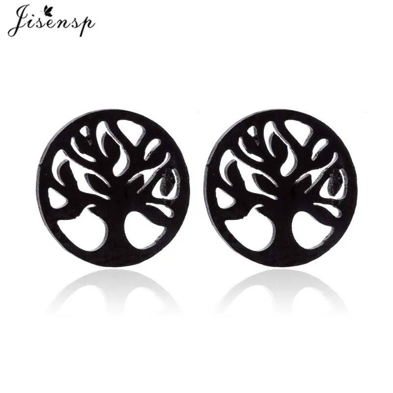 Серьги-гвоздики женские, винтажные, из нержавеющей стали, черные, дерево жизни, серьги